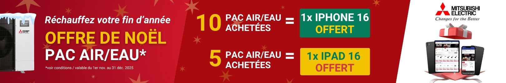 Jusqu'à 500€ d'accessoires offerts pour l'achat d'une PAC AIR/EAU Mitsubishi Electric !