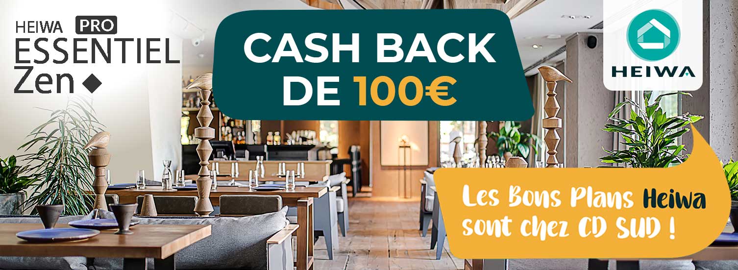 Profitez d'un CASH BACK de 100€* pour l'achat d'un ensemble Heiwa PRO Essentiel Zen, gainable, cassette ou plafonnier, valable jusqu'au 30 juin 2022.