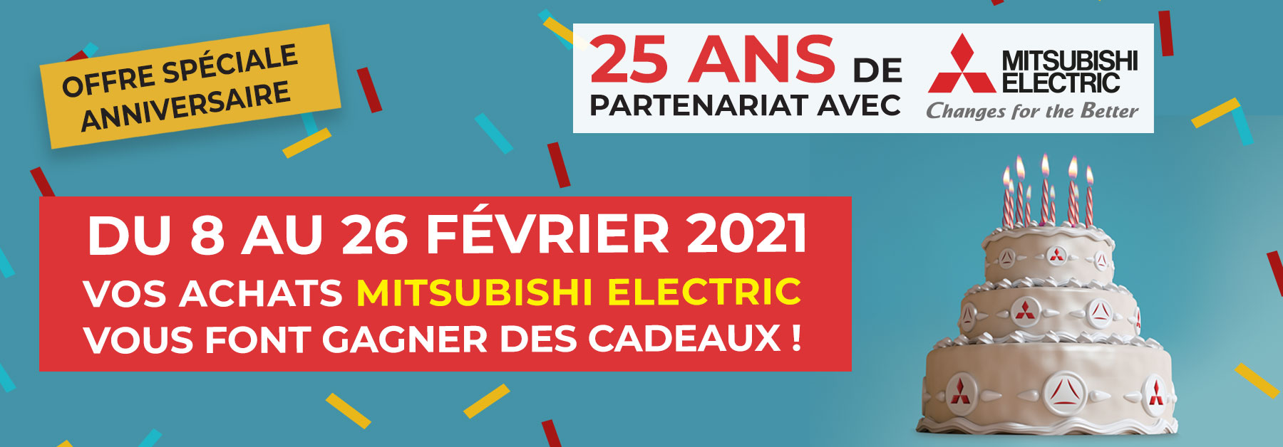 Du 8 au 26 février 2021, profitez d'une offre spéciale anniversaire* ! Vos achats Mitsubishi Electric vous font gagner des cadeaux.