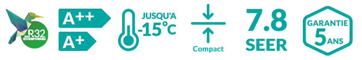 Les pompes à chaleur air/air Essentiel Zen 2 Heiwa fonctionnent au fluide réfrigérant écologique R32, alliant confort et performance.
