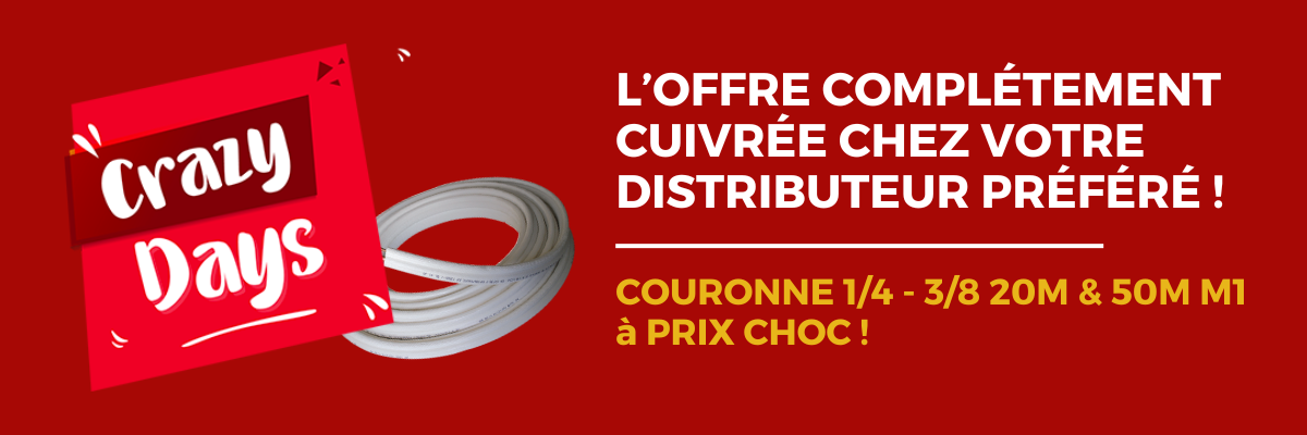 Maximisez vos installations avec notre offre exceptionnelle sur les couronnes de cuivre isolées 1/4 - 3/8 ! Offre valable uniquement dans vos agences CD SUD